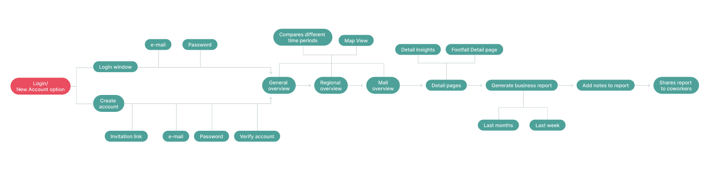 Sketching graphs, navigation, widgets, and home screen layouts helped us prioritize UX and highlight key metrics. Focusing first on frontline mall managers, we aimed to simplify the interface, and set the baseline for scalable solutions.